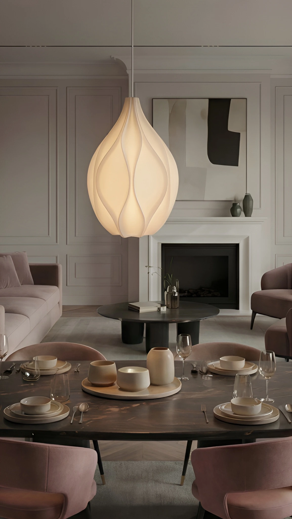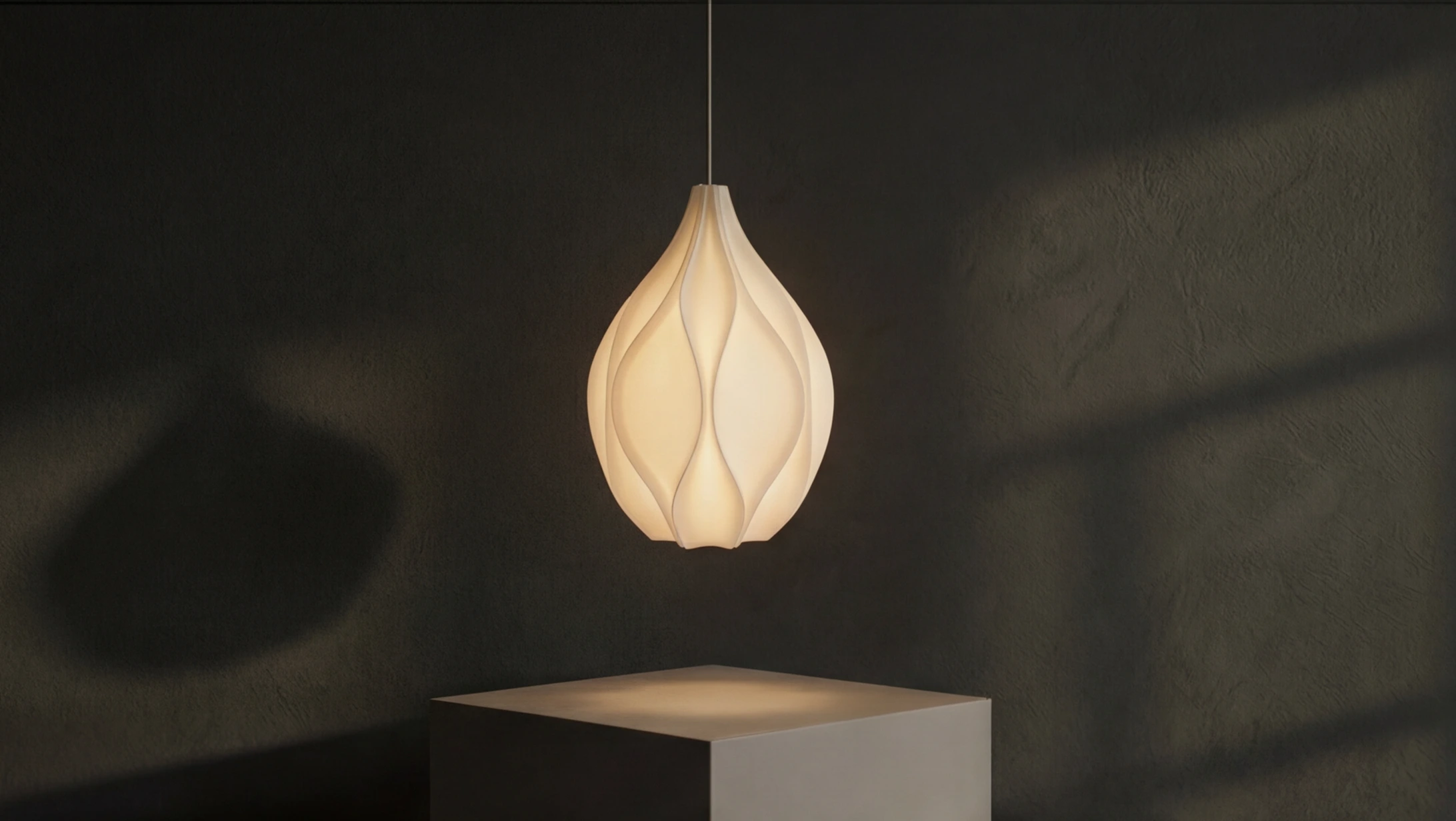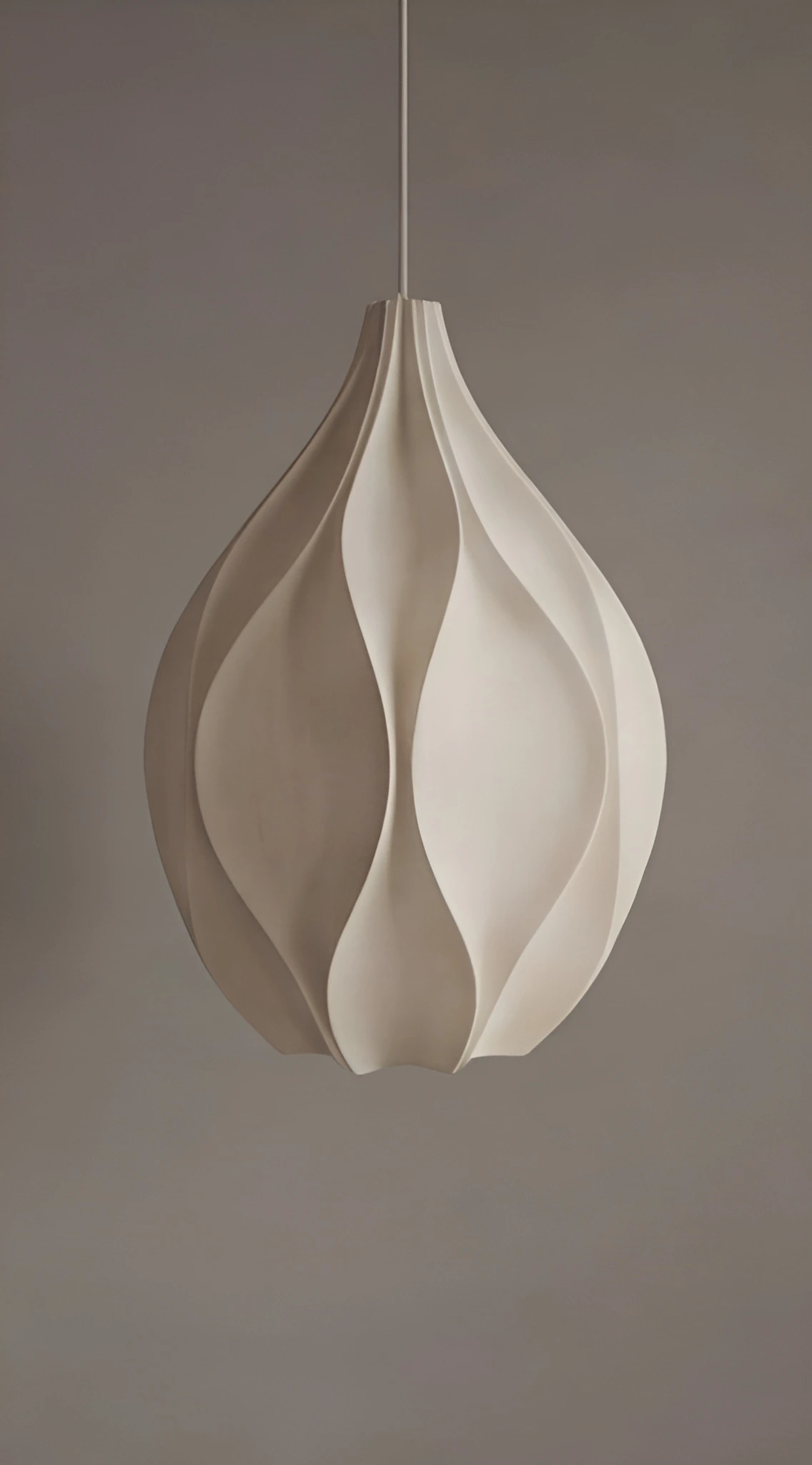 Its silhouette is defined by a series of rhythmic lobes—fluid, repeating curves that echo the symmetry found in nature’s protective pods or unbloomed flowers. This “ribbed” geometry is not merely aesthetic; it is a structural dialogue between the internal skeleton and the tensioned, skin-like diffuser that envelops it.
