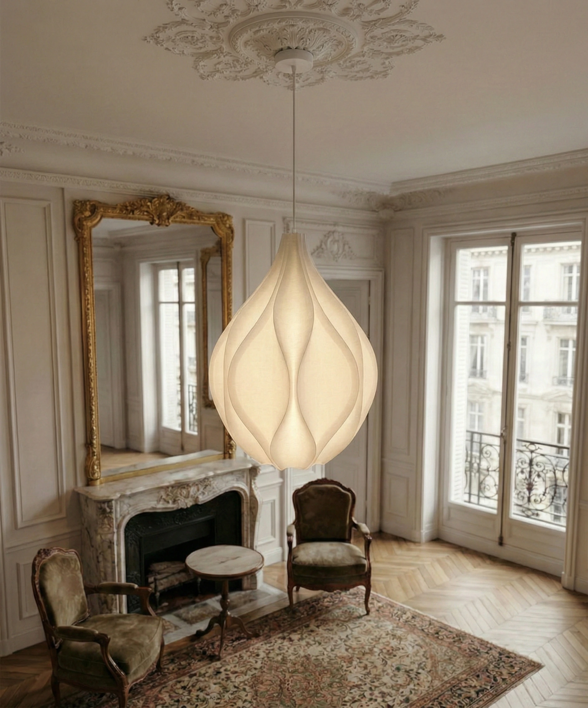 The Fysalis Pendant is a sculptural exploration of nature’s quietest moments, inspired by the protective layers of a dormant husk waiting to bloom. Much like the Tulip Lamp and La Méduse, this pendant explores the harmony between tension and release, capturing the essence of organic growth in a static, suspended form.