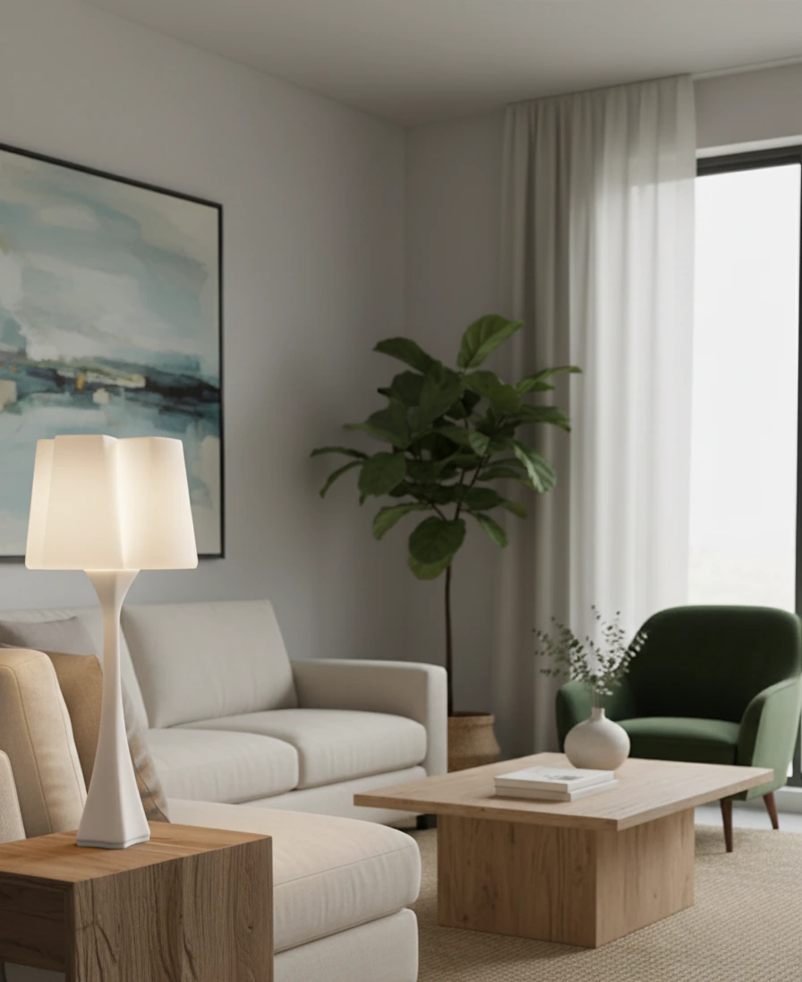 The Tulip Lamp by Idea34 is a harmonious blend of sustainable craftsmanship and forward-thinking design. Created with a commitment to eco-conscious innovation, this sculptural table lamp is 3D-printed using environmentally responsible materials. Each piece is crafted from either silk PLA—a biodegradable bioplastic derived from renewable resources like corn starch or sugar cane—or recycled plastics recovered from ocean cleanup initiatives. This dual-material approach reflects a dedication not only to aesthetics but also to positive environmental impact.
